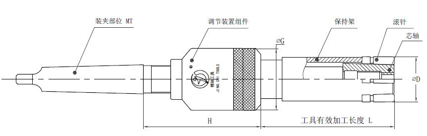 注:孔徑Φ26-68的滾壓刀有效加工長(zhǎng)度從B檔開(kāi)始柄部標(biāo)配MT3,如需其他型號(hào)規(guī)格需定做。加工孔徑Φ40以上的滾壓刀,由于調(diào)節(jié)組件的外徑比加工孔徑小,可通過(guò)加長(zhǎng)柄部尺寸的方法增加加工長(zhǎng)度。