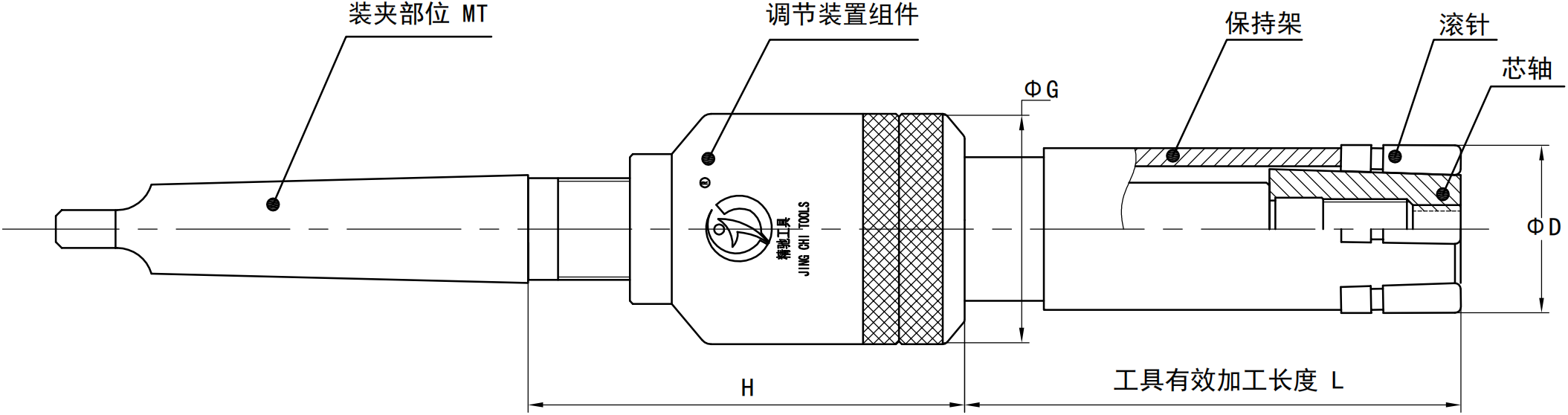 注:孔徑Φ26-68的滾壓刀有效加工長度從B檔開始柄部標(biāo)配MT3,如需其他型號規(guī)格需定做。加工孔徑Φ40以上的滾壓刀,由于調(diào)節(jié)組件的外徑比加工孔徑小,可通過加長柄部尺寸的方法增加加工長度。