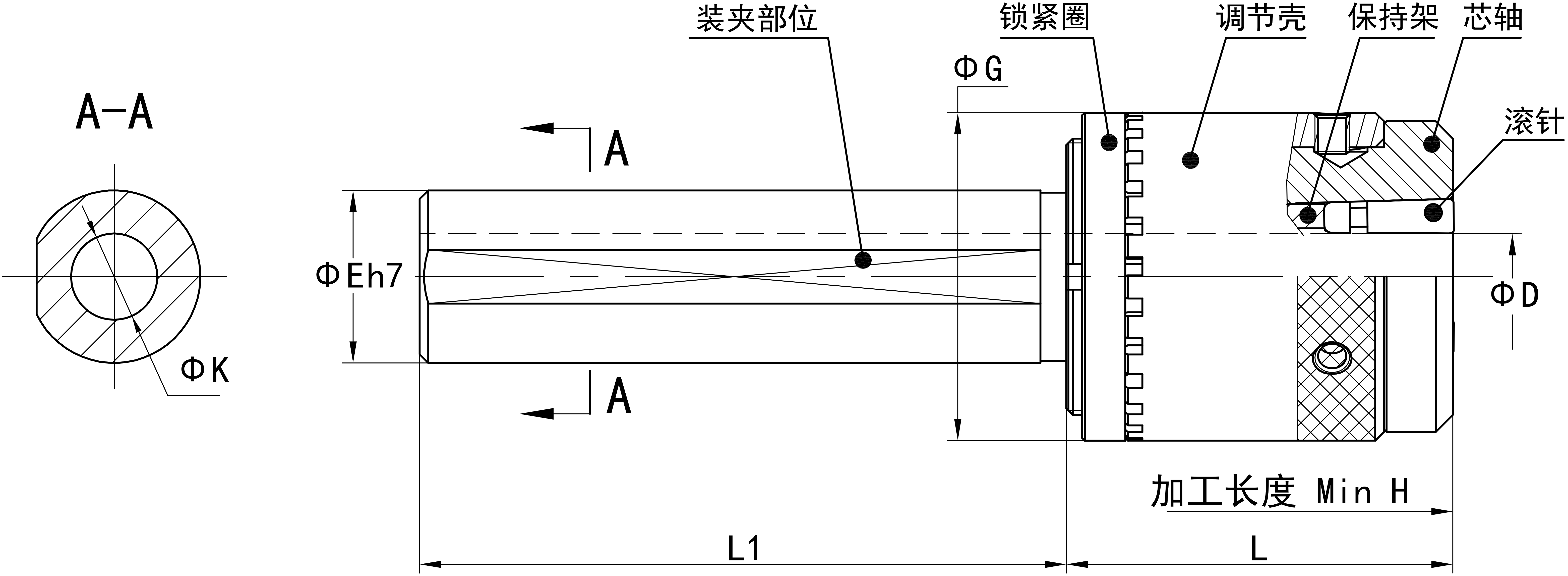 JC-WS系列工具比較適合安裝在有長度限制的機床上,加工直徑Φ3-14mm。當裝夾部柄徑采用足夠直徑時,由于柄部內(nèi)孔大于滾壓尺寸,加工長度將無限制。